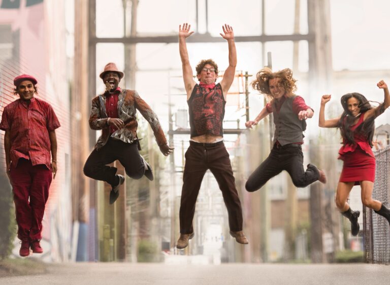 Montreal’s Gypsy Kumbia Orchestra is an explosion of music and dance, circus and imagination. The band is a creative chaos that fuses Afro-Colombian percussion with the brass and violin melodies of the Roma peoples of Eastern Europe.